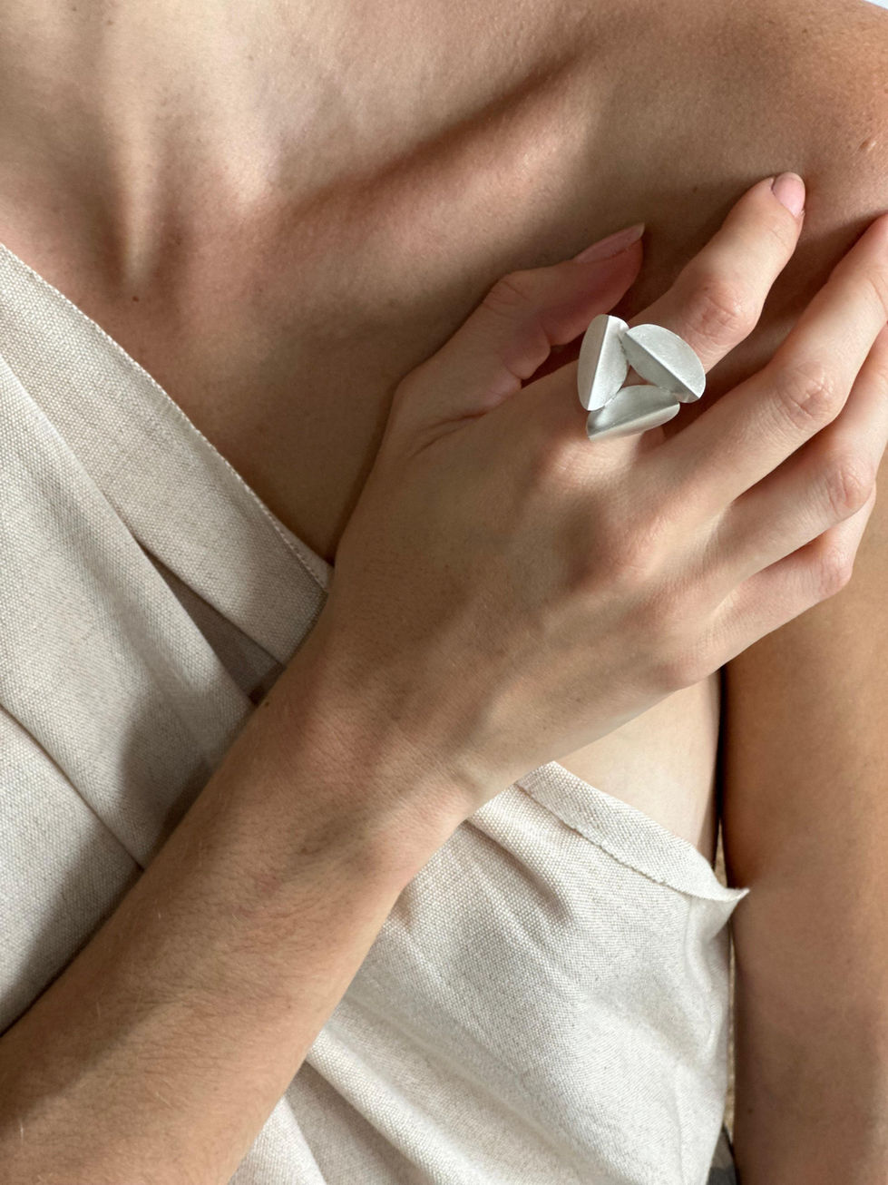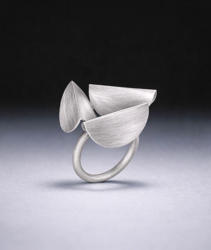 950 silver ring. With folded circular shapes. Brushed finish.